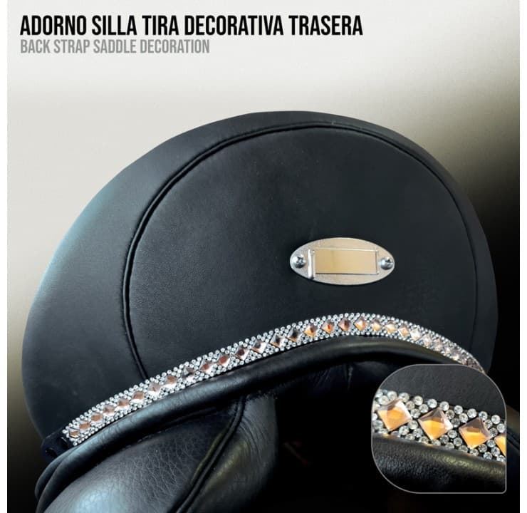 Precio, información, características e imágenes de Adorno silla CASTECUS cinta decorativa trasera cristales rombo rosegold/plata referencia GMZ2130108, pertenece a las categorías Equipo caballo (471) y Sillas, Cinchas, Pechopetrales y Baticolas (43) y a la marca CASTECUS by ZALDI (20).