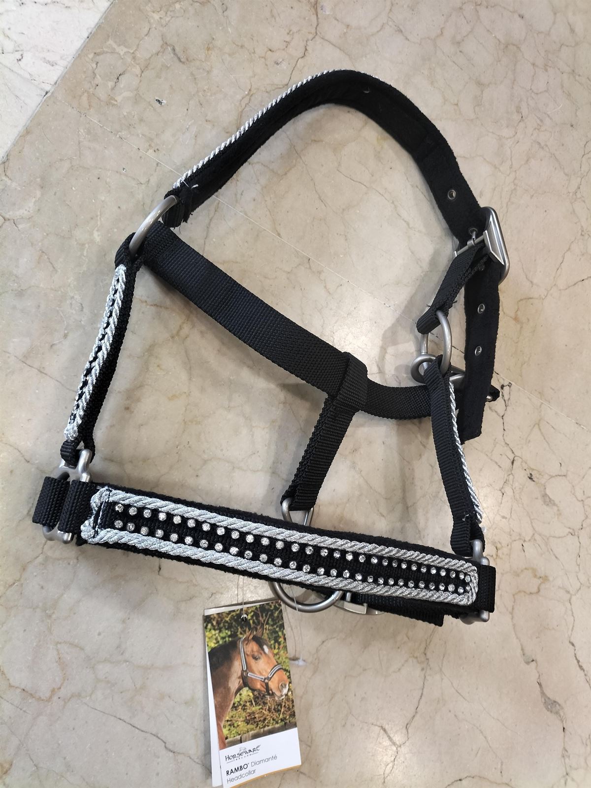 Cabezada realizada con nylon muy resistente y confortable. Decorada con motivos DIAMANTE. La correa de la muserola y testero se encuentran acolchadas para proporcionar la máxima comodidad al caballo.
