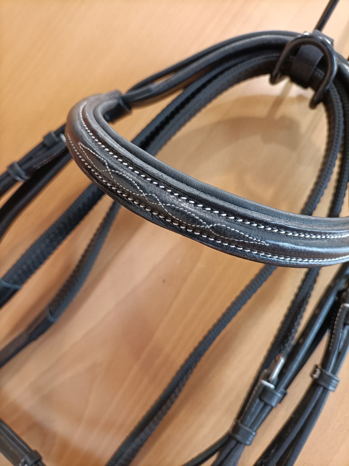 Frontalera y muserola alomadas, con adornos en hilo blanco.