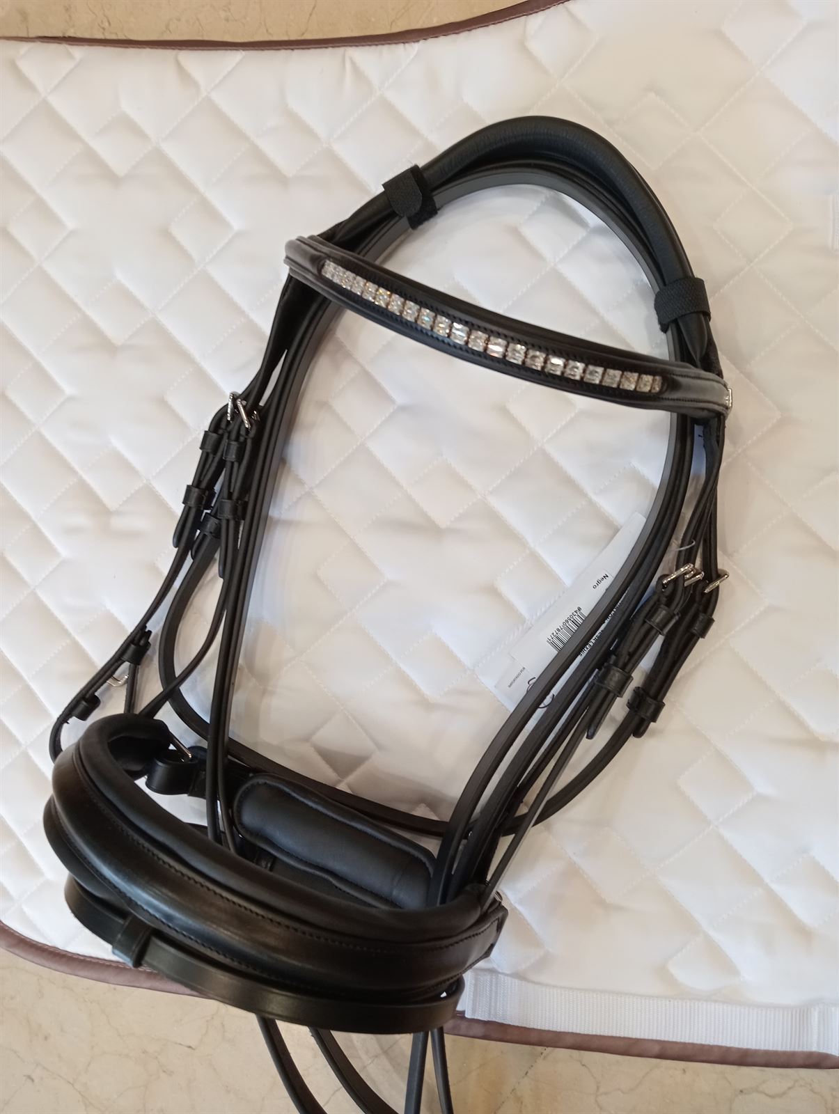 Cabezada elaborada con cueros de primera calidad y hebillaje de acero inoxidable. Detalles técnicos: