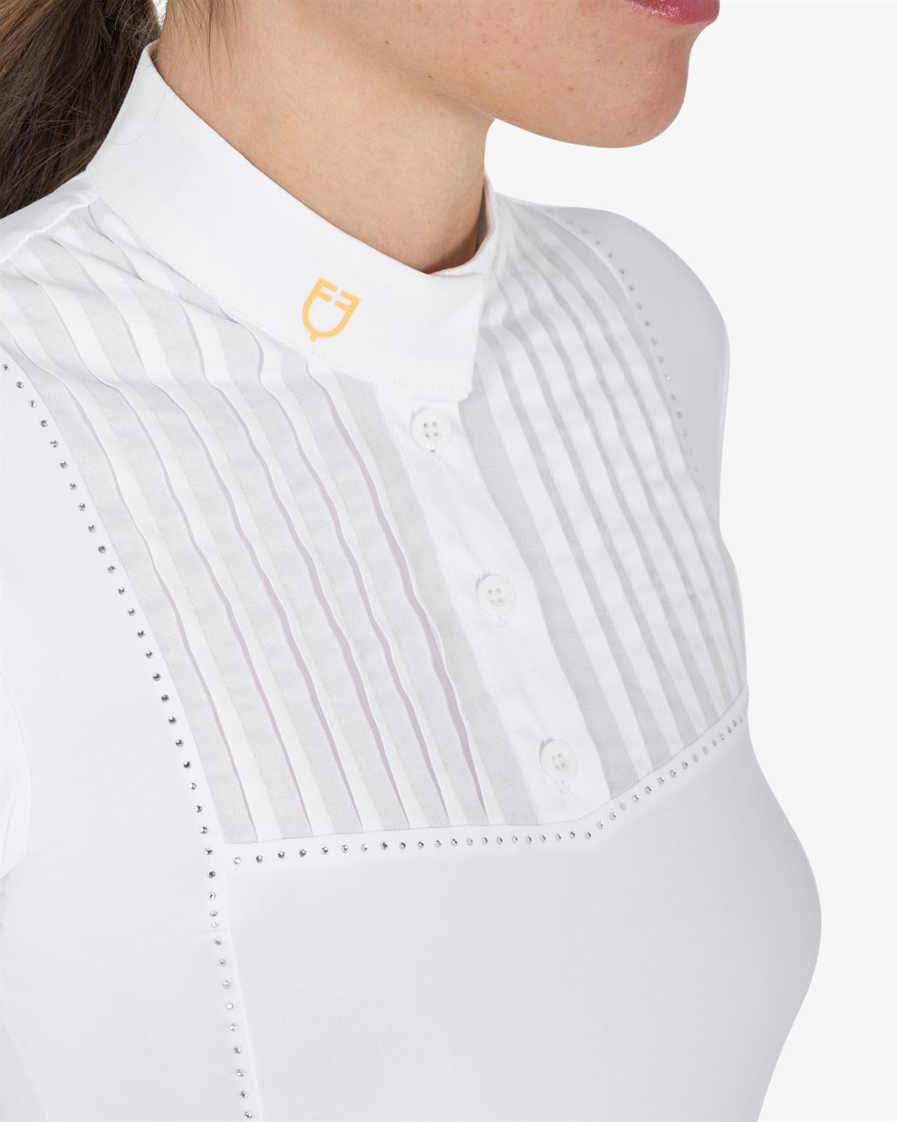 Polo concurso mujer EQUESTRO color blanco con cristalitos manga larga