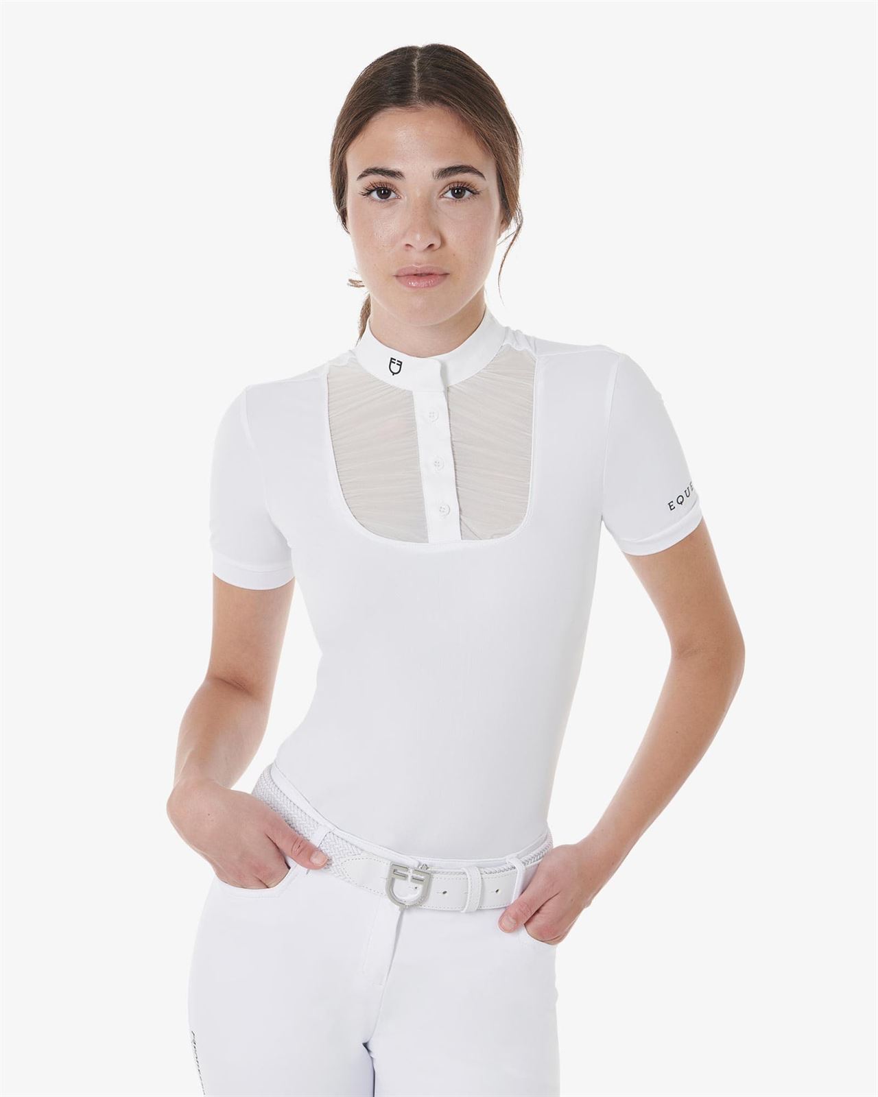 Polo concurso mujer EQUESTRO color blanco pechera fruncida